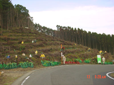 - 漁民の森づくり「植樹祭」 日時 平成18年12月3日 場所 烏帽子岳(風倒木跡地) 面積 約3,000㎡ 本数 約6,000本 参