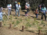 今回植えたのはアラカシ、ウラジロガシ、マテバシイ、スダジイ、シリブカガシ、イチイガシ、アカガシ、山つばきなど1万本。